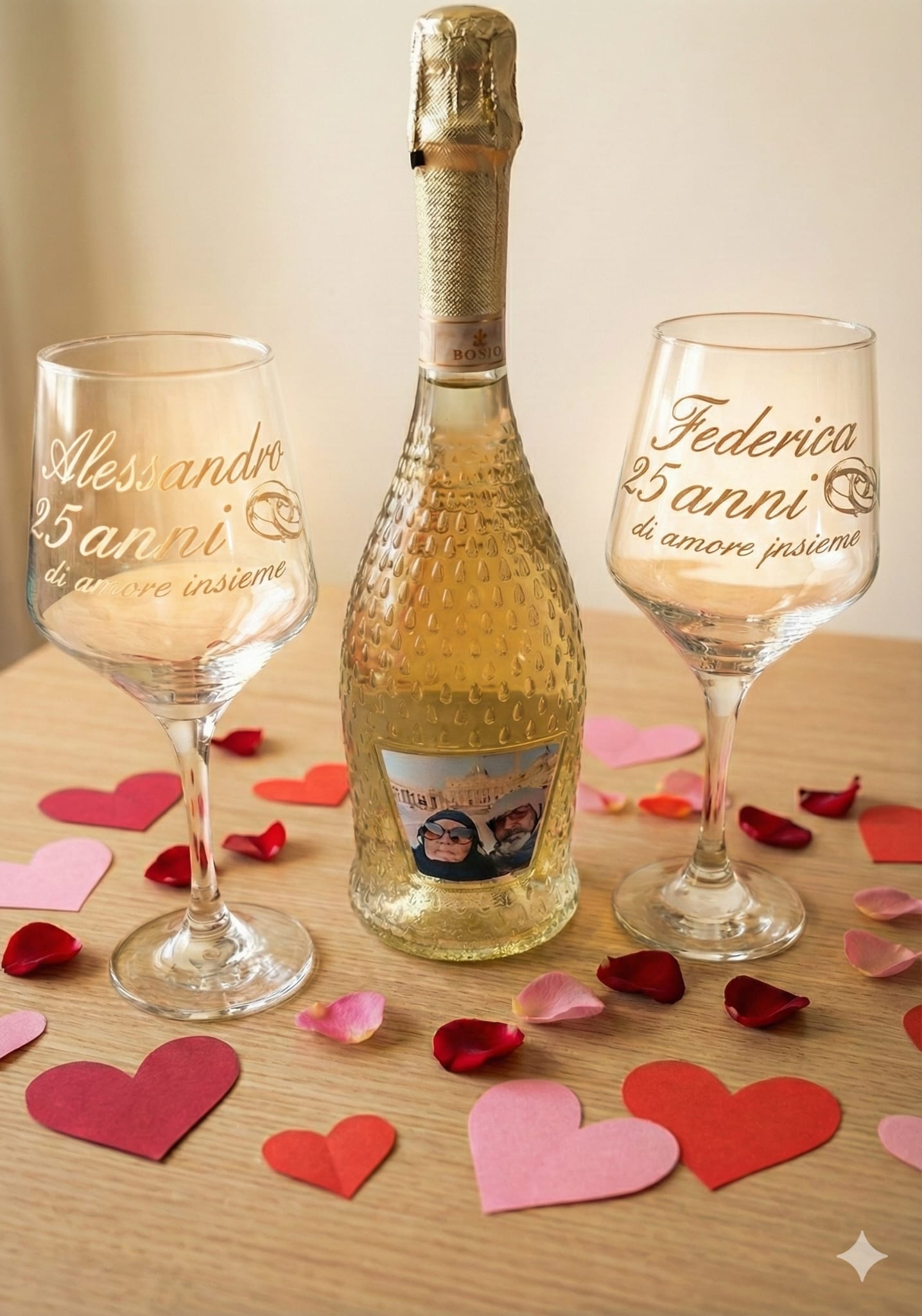 Bottiglia di vino con personalizzazione di foto originali o caricatore e frasi