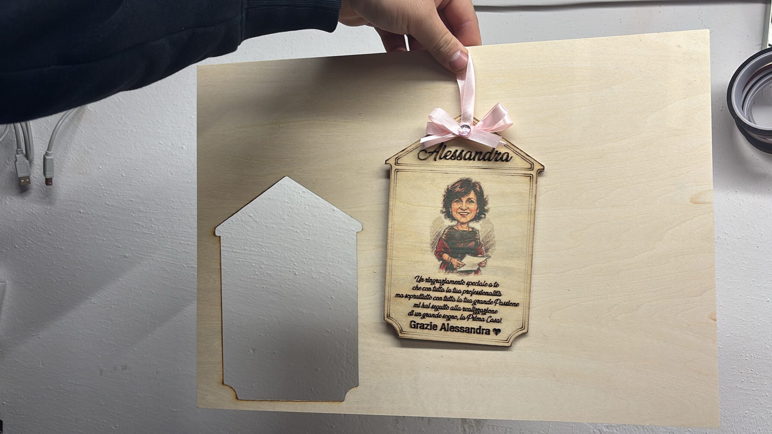 Possiamo intagliare il legno in ogni forma. Possibilità di incidere la frase e di stampare una foto normale o trasformarla in caricatura. Il prezzo varia a seconda delle lavorazione Si parte da una base di 10€ in su